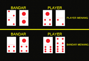 3. apabila nilai kartu antar pemain dan bandar sama,maka pemenangnya adalah bandar. Jika player memiliki nilai kartu 9 maka player akan mendapat bayaran 2x atau double.